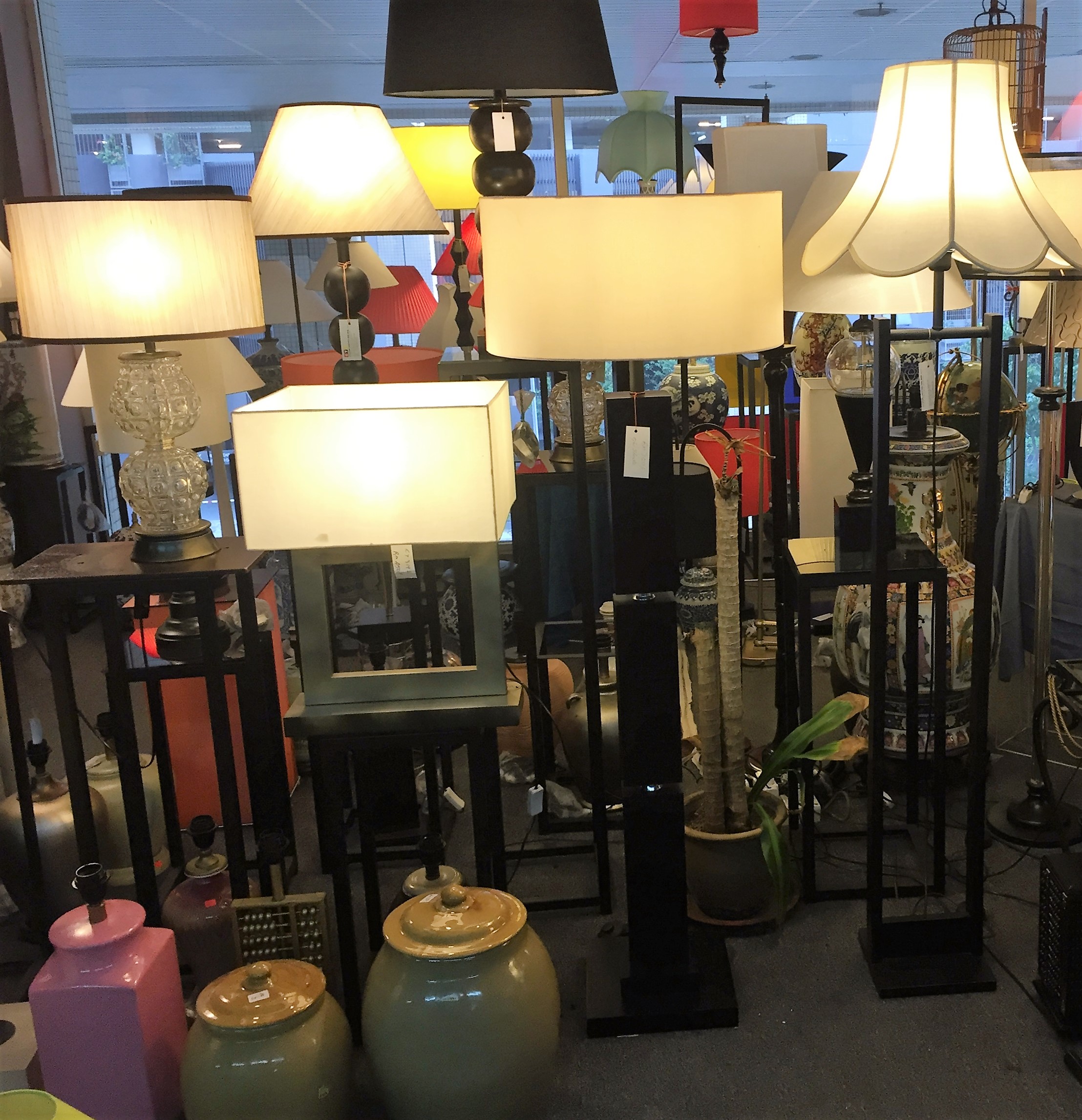 Visit our show room. We have the largest selection of lampshades and table lamps (custom made).